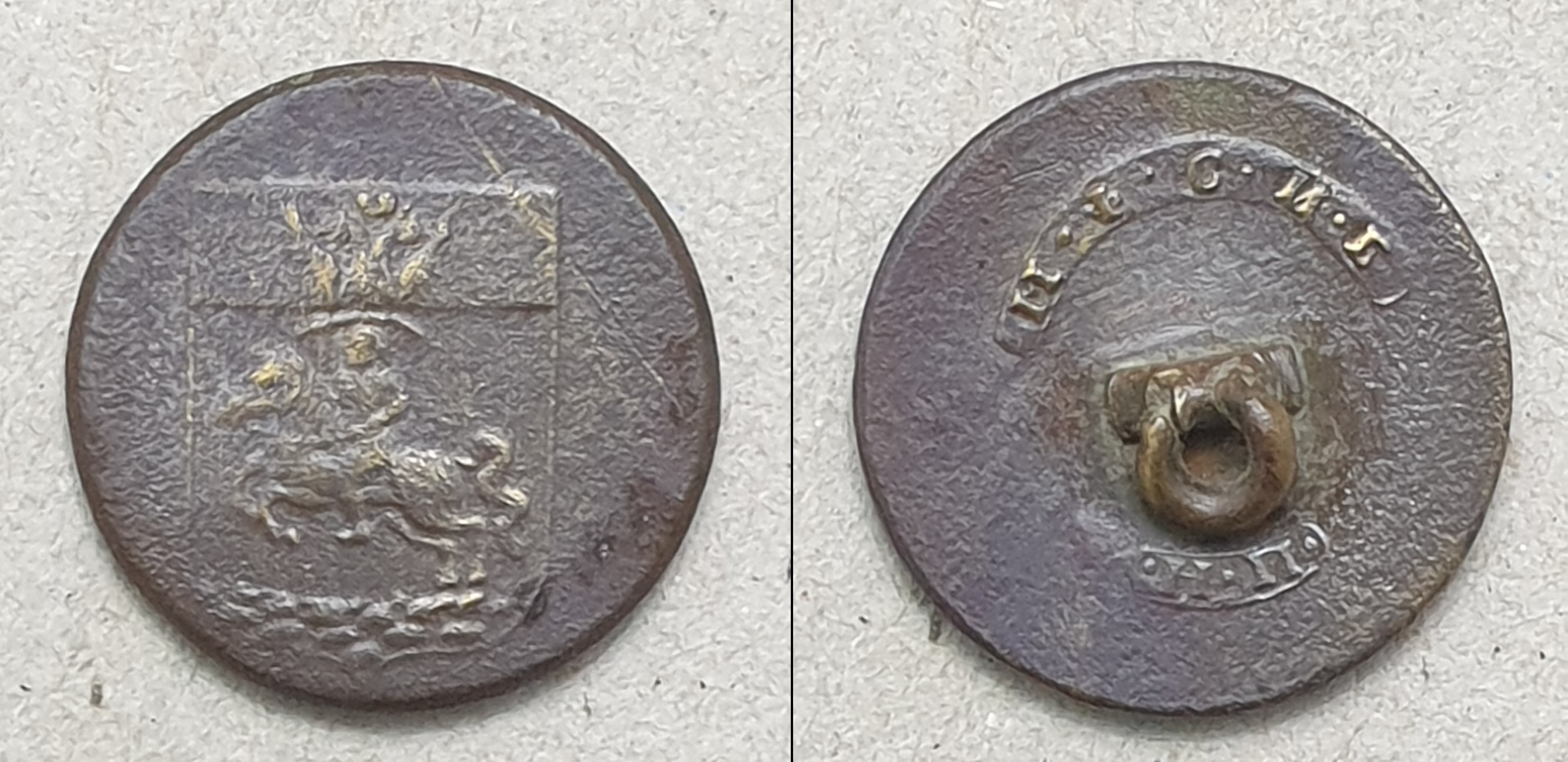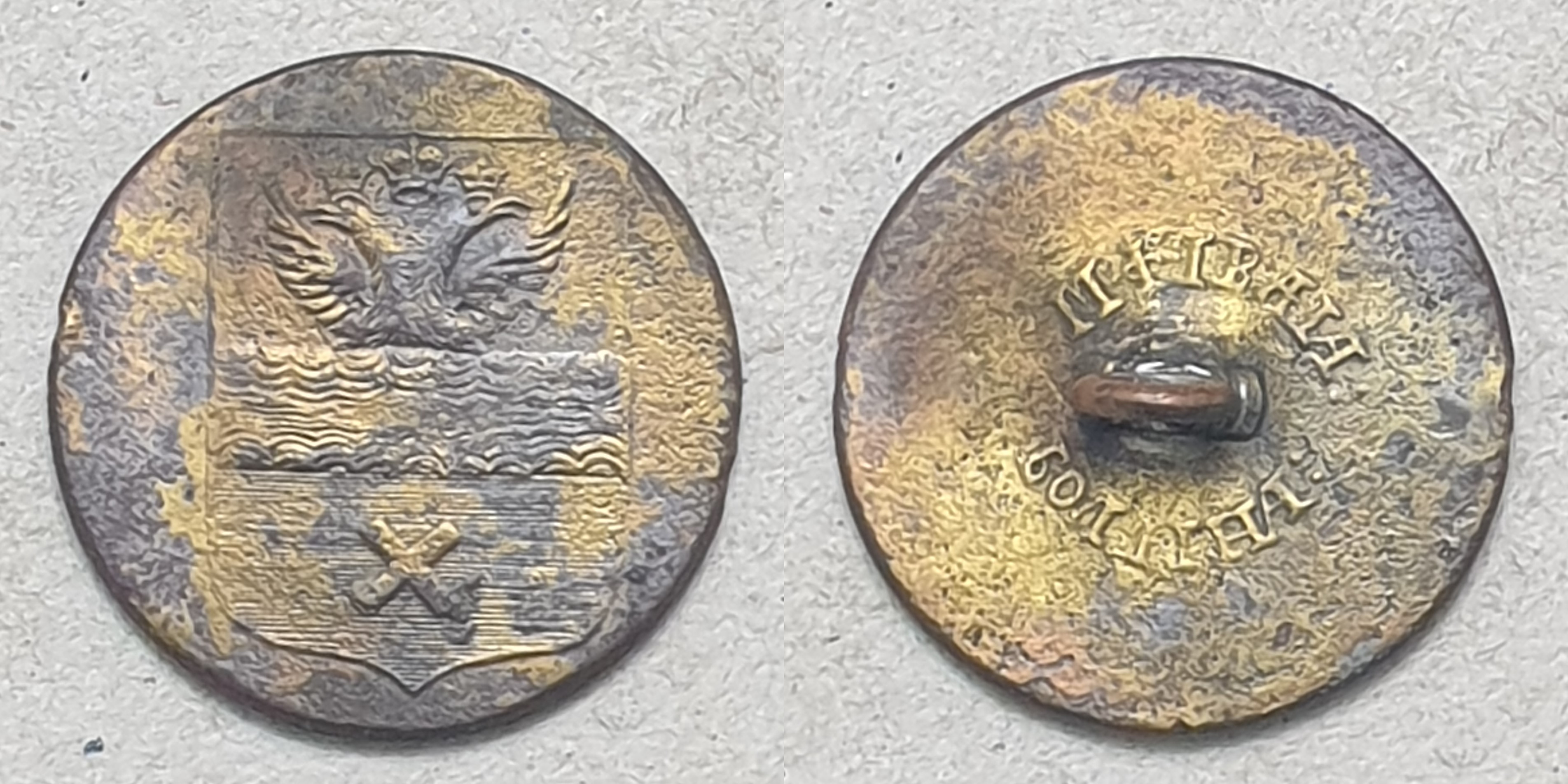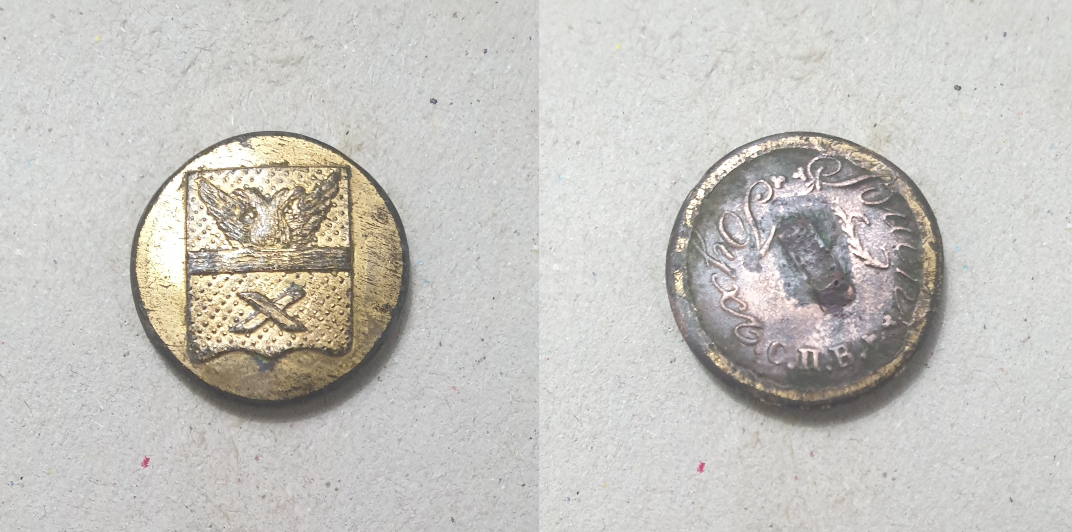 Леонид! Спасибо за буквы. По этой пуговице сходу сказать, пока, ничего не смогу. Впевые пуговицу с таким гербом вижу. Поищу в своих архивах.