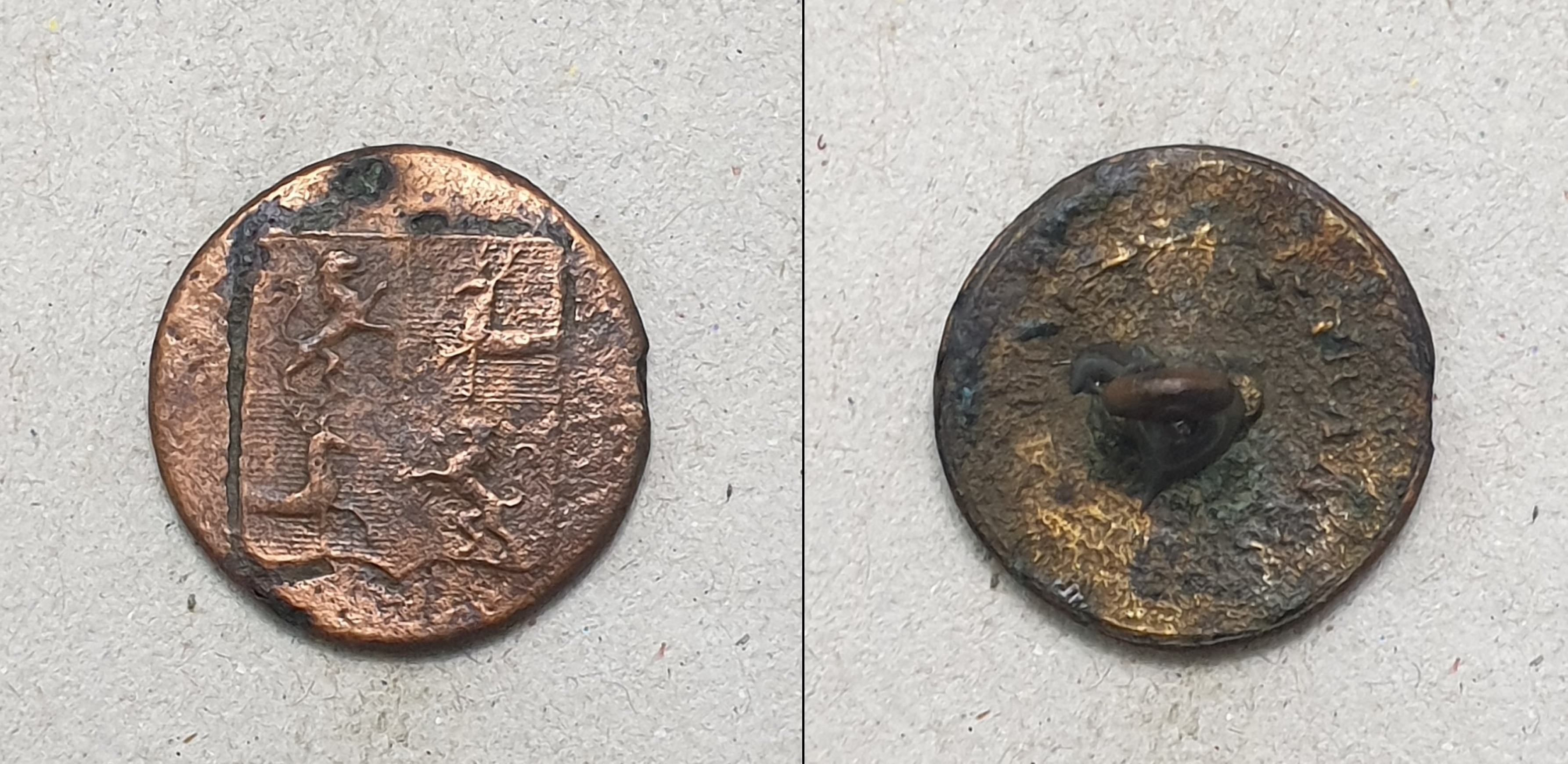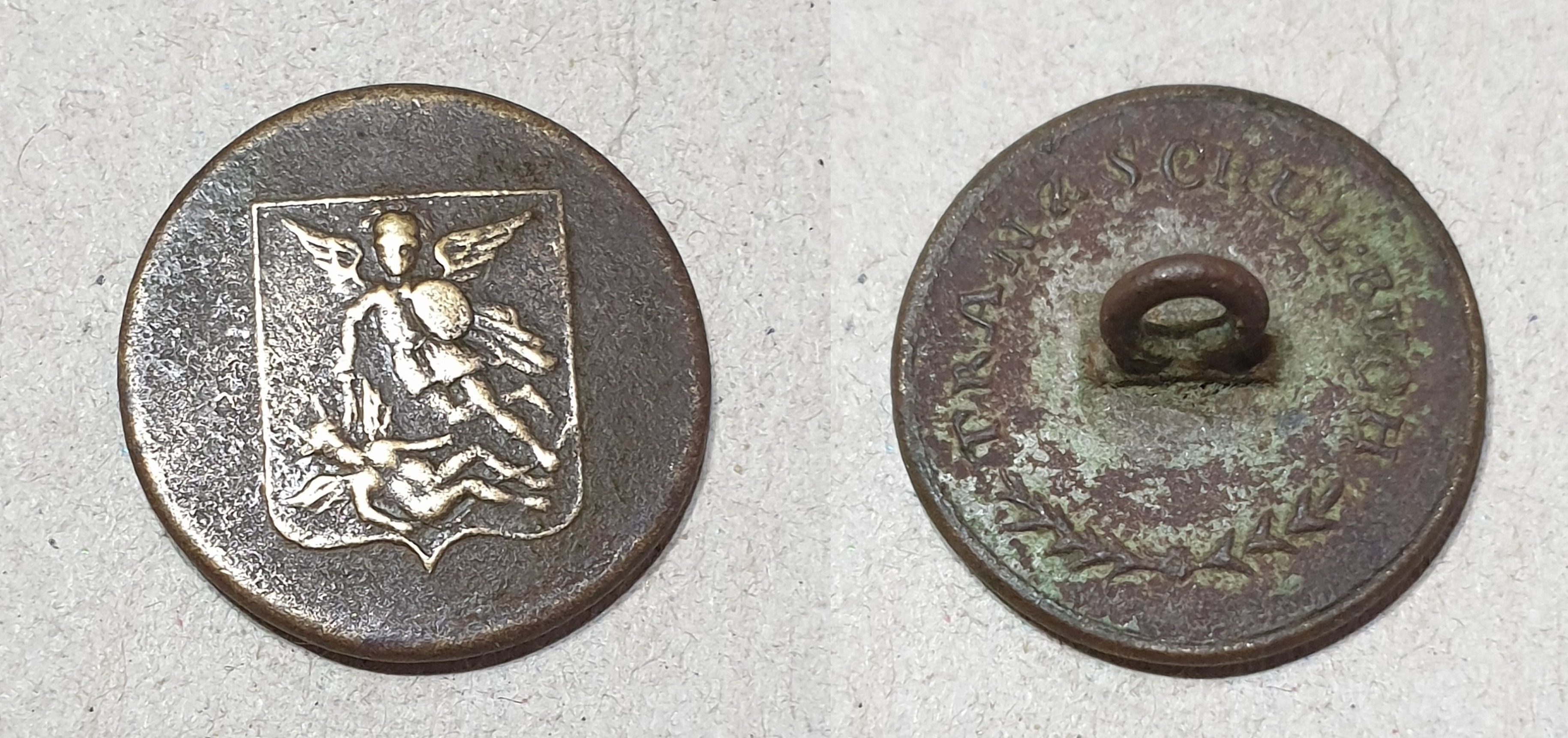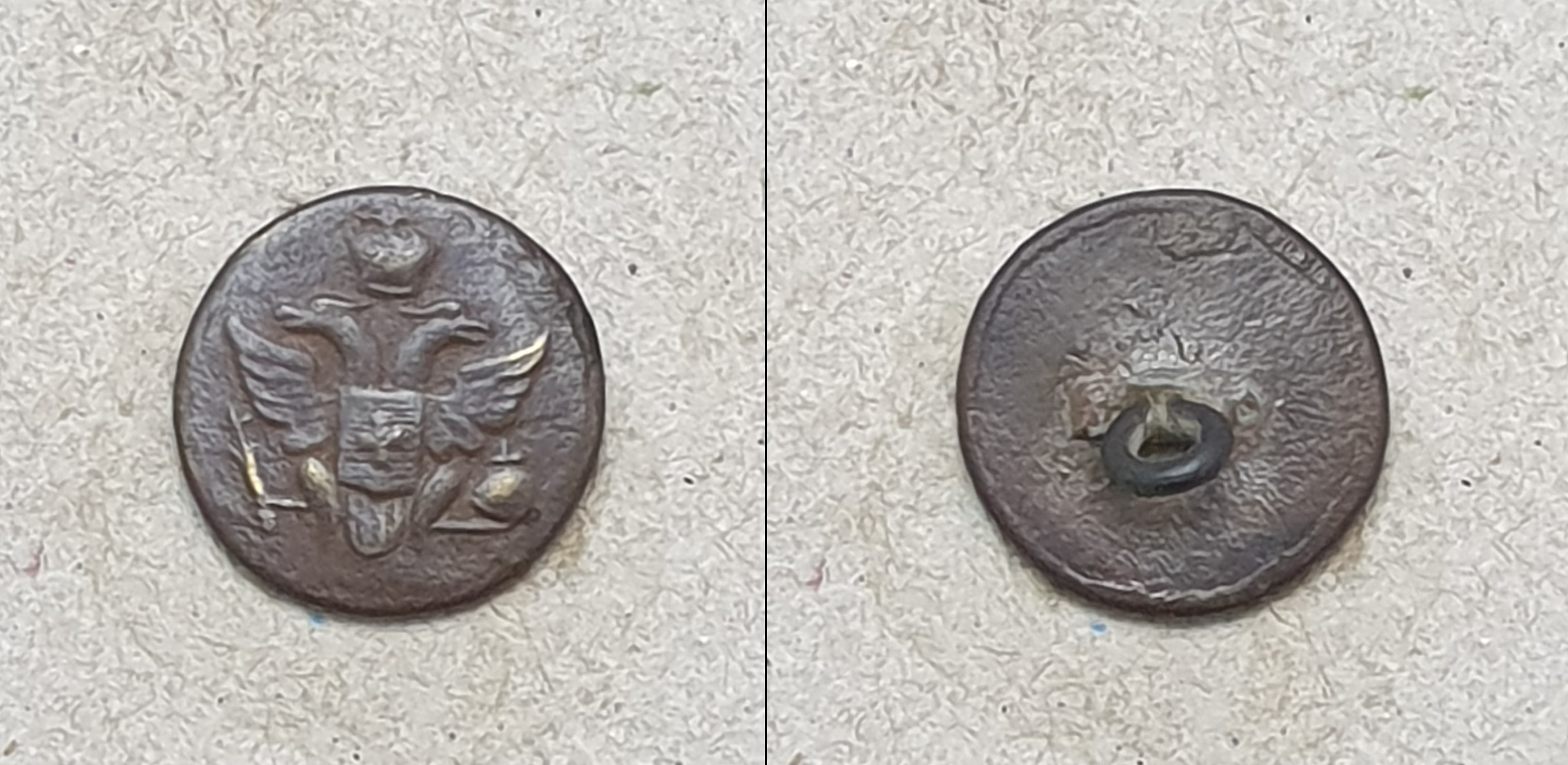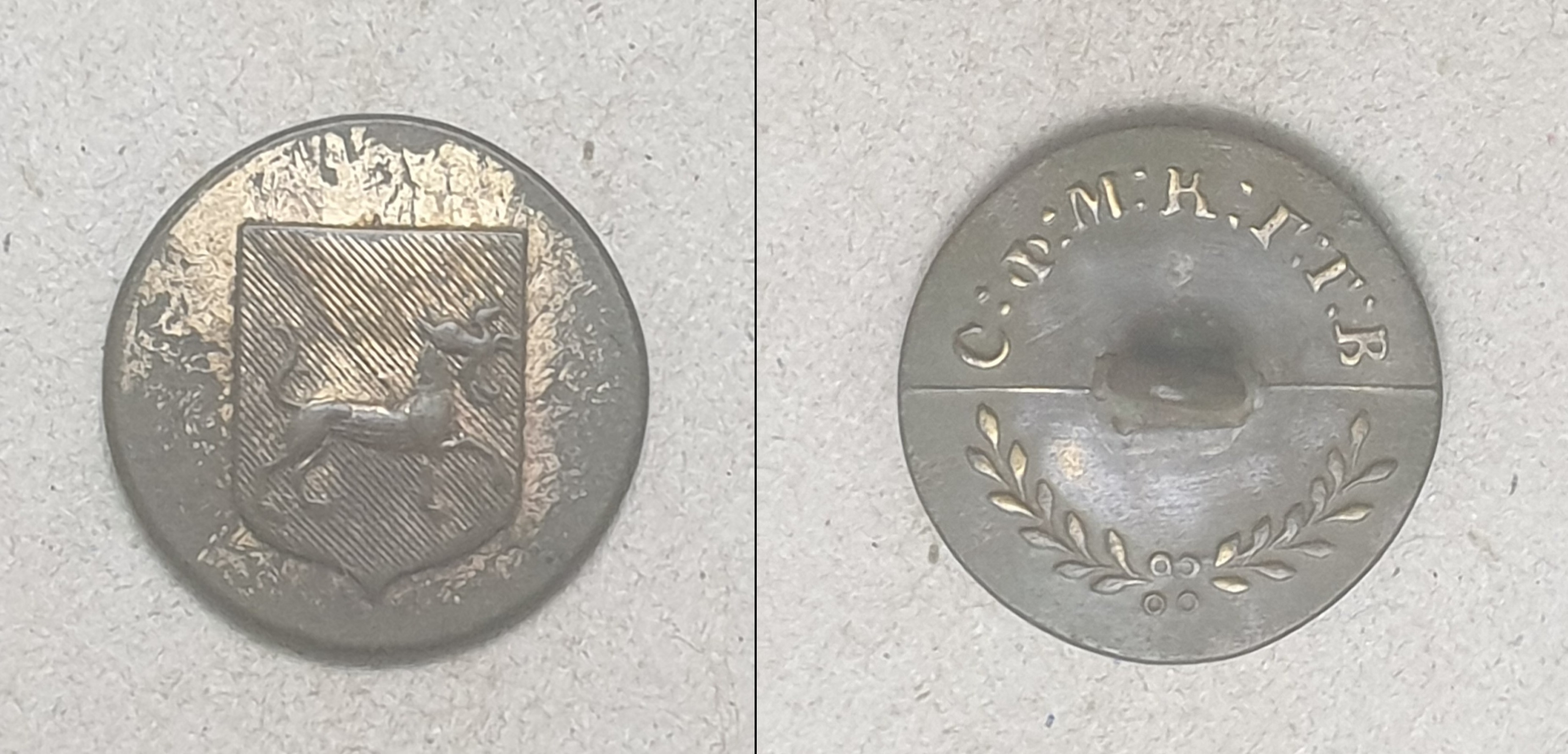 Леонид! Спасибо за буквы. По этой пуговице сходу сказать, пока, ничего не смогу. Впевые пуговицу с таким гербом вижу. Поищу в своих архивах.