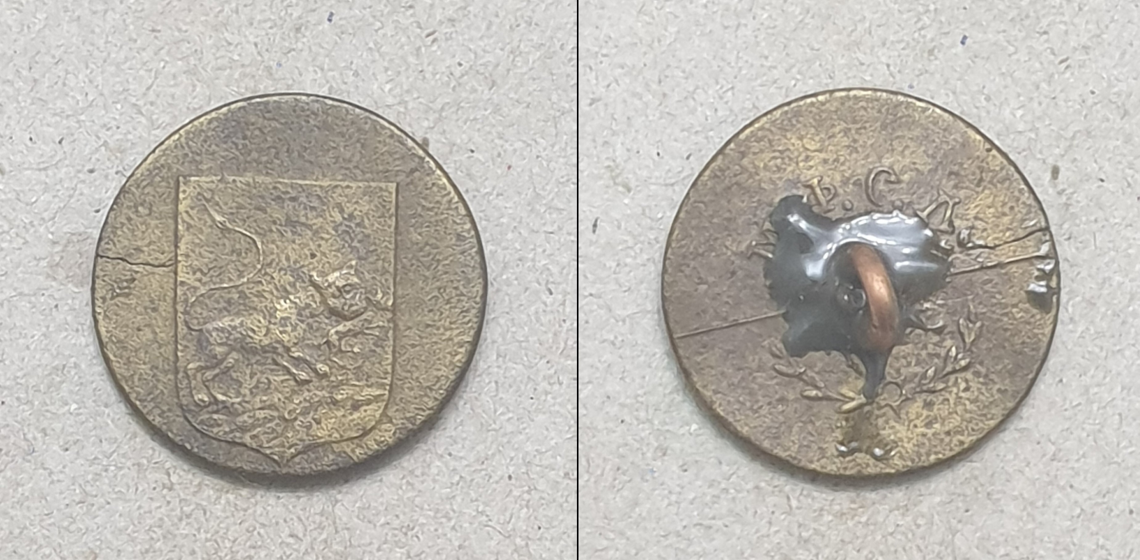 Леонид! Вопрос по малой пуговице (16 мм) Оренбургской губернии - в клейме над ушком есть две буквы. Или П.В. или П.Б. Просьба уточнить.