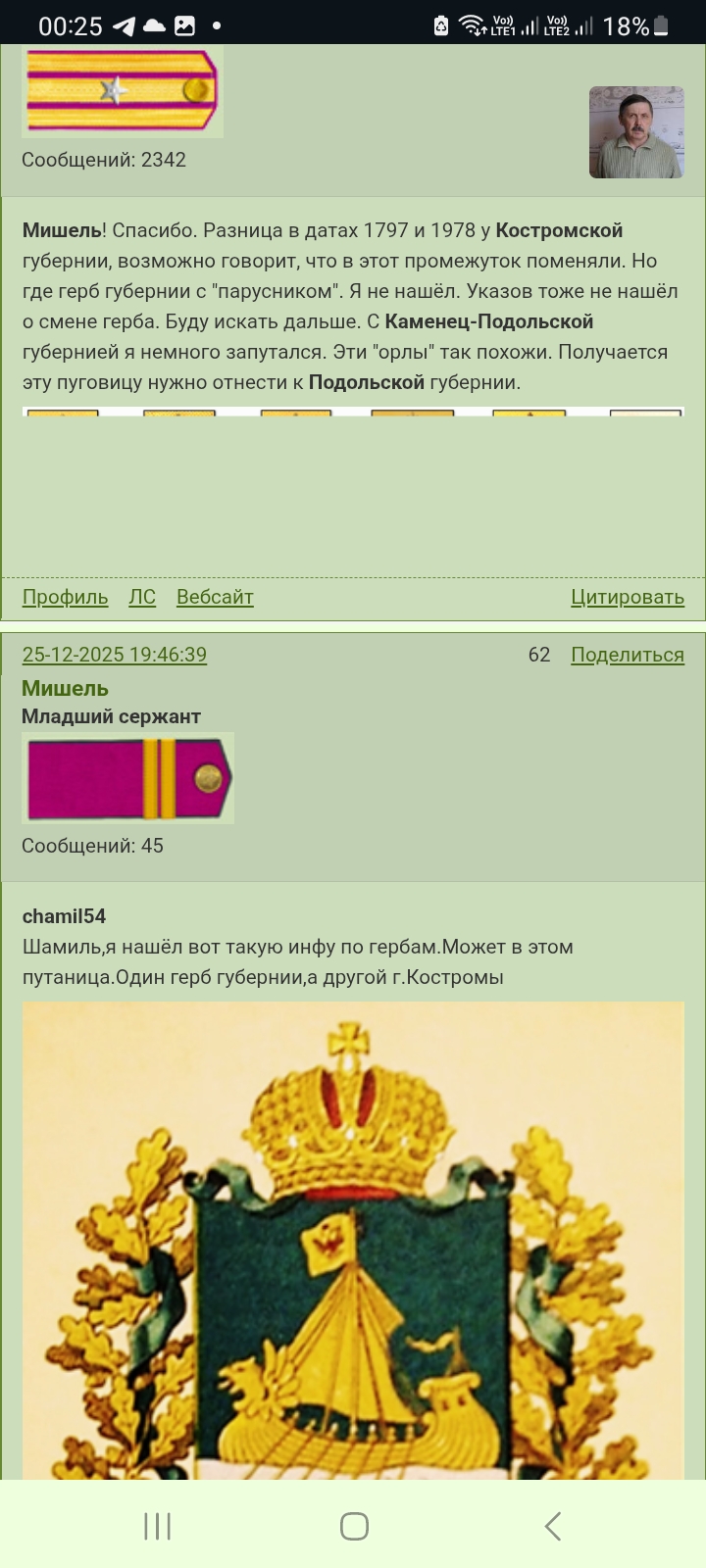 Леонид! В своих архивах всё просмотрел, но такого герба, как у Вашей пуговицы, не нашёл. Как говорит герой одного фильма "...будем искать... с перламутровыми...".