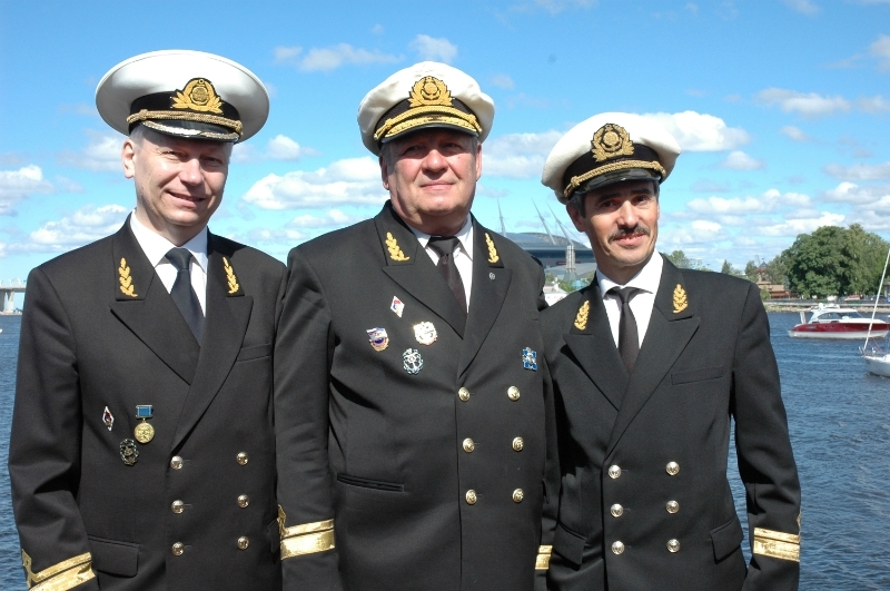 На чёрной тужурке речфлота (на фото И.А. Булава - нарушает Правила: ношение наград обязательно):