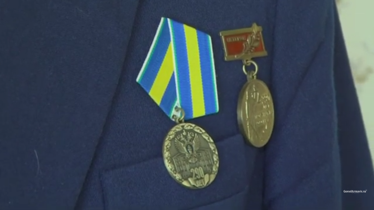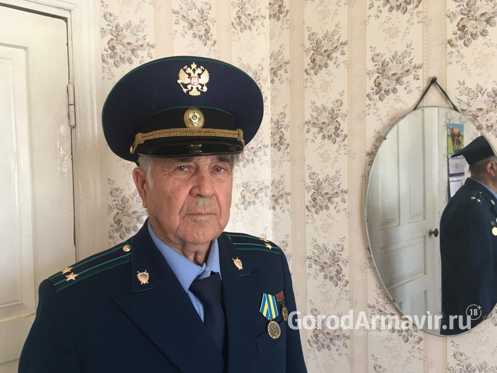 Александр Михайлов вышел на пенсию в 1997 году с должности заместителя прокурора Армавира. Видимо, форма на 1997 год. Как видим, кокарды с гербом РФ еще нет. Характерное для переходного периода смешение символики СССР и РФ.