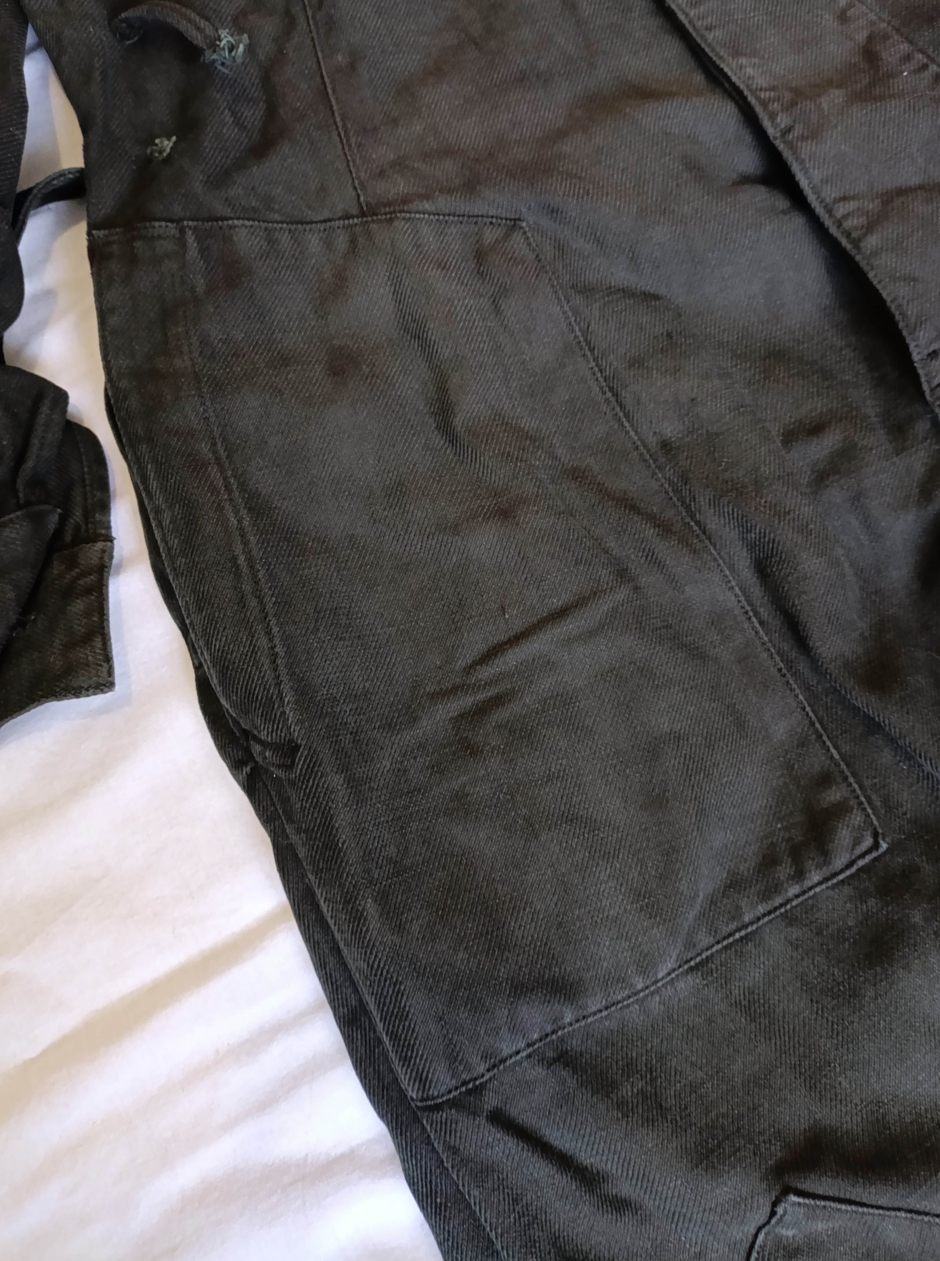 Похоже на послевоенные рабочие комбинезоны. ПО ТУ-1964 или 1967г. Шились из чёрной, синей и зелёной (цвета хаки) ткани.