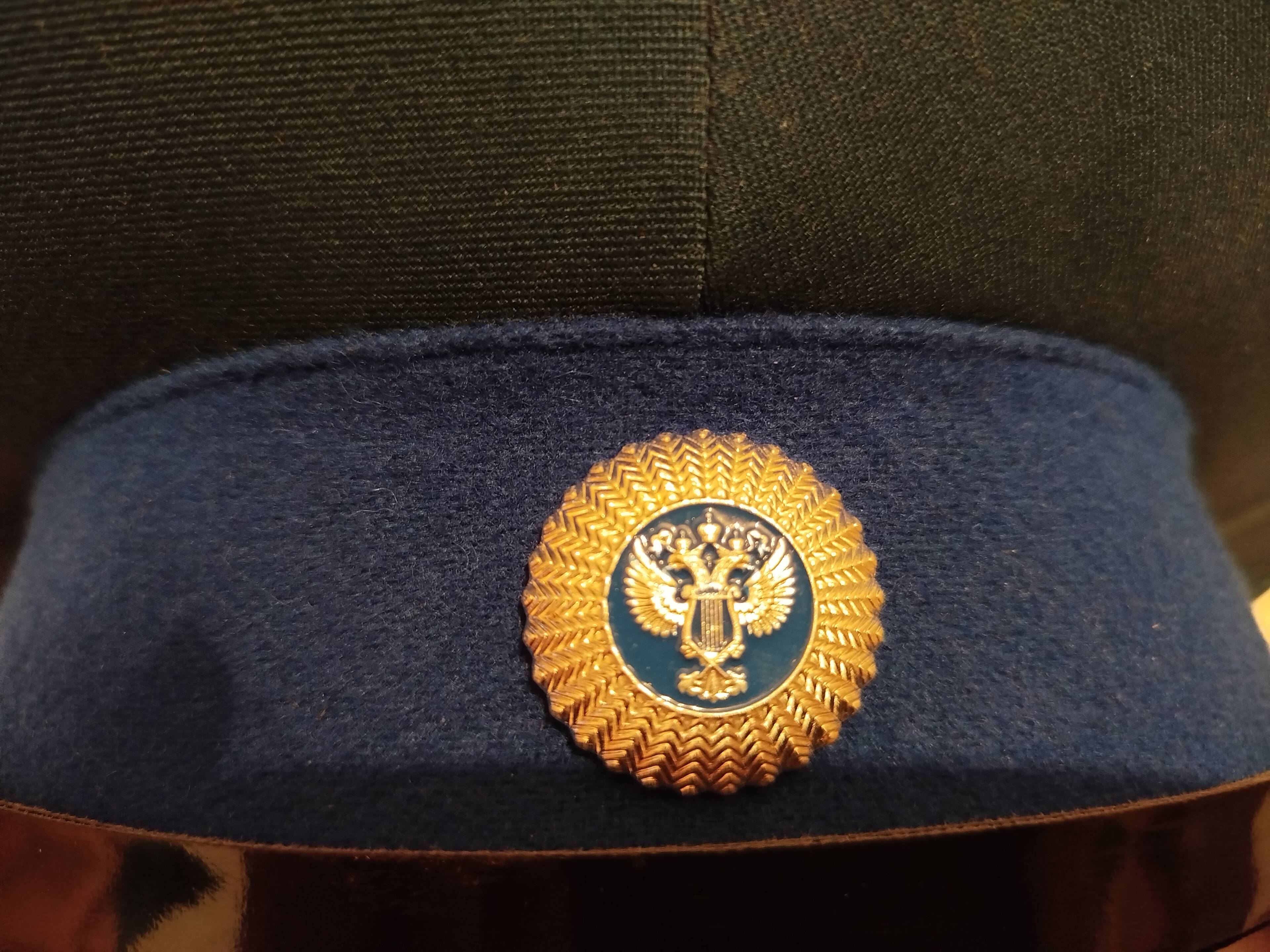 Уважаемые коллеги! Прошу помощи в определении ведомства, которому принадлежит эта фуражка. Поиск в Интернете ничего не дал. Описание: тулья цвета морской волны, кант и околыш синего ( василькового) цвета. Кокарда и пуговицы серебристого цвета, на них изображен орел ( на кокарде на синем фоне), в центре орла изображение типа лиры, черный лакированный ремешок. Года изготовления нет, предположу, что это 2010-е гг.