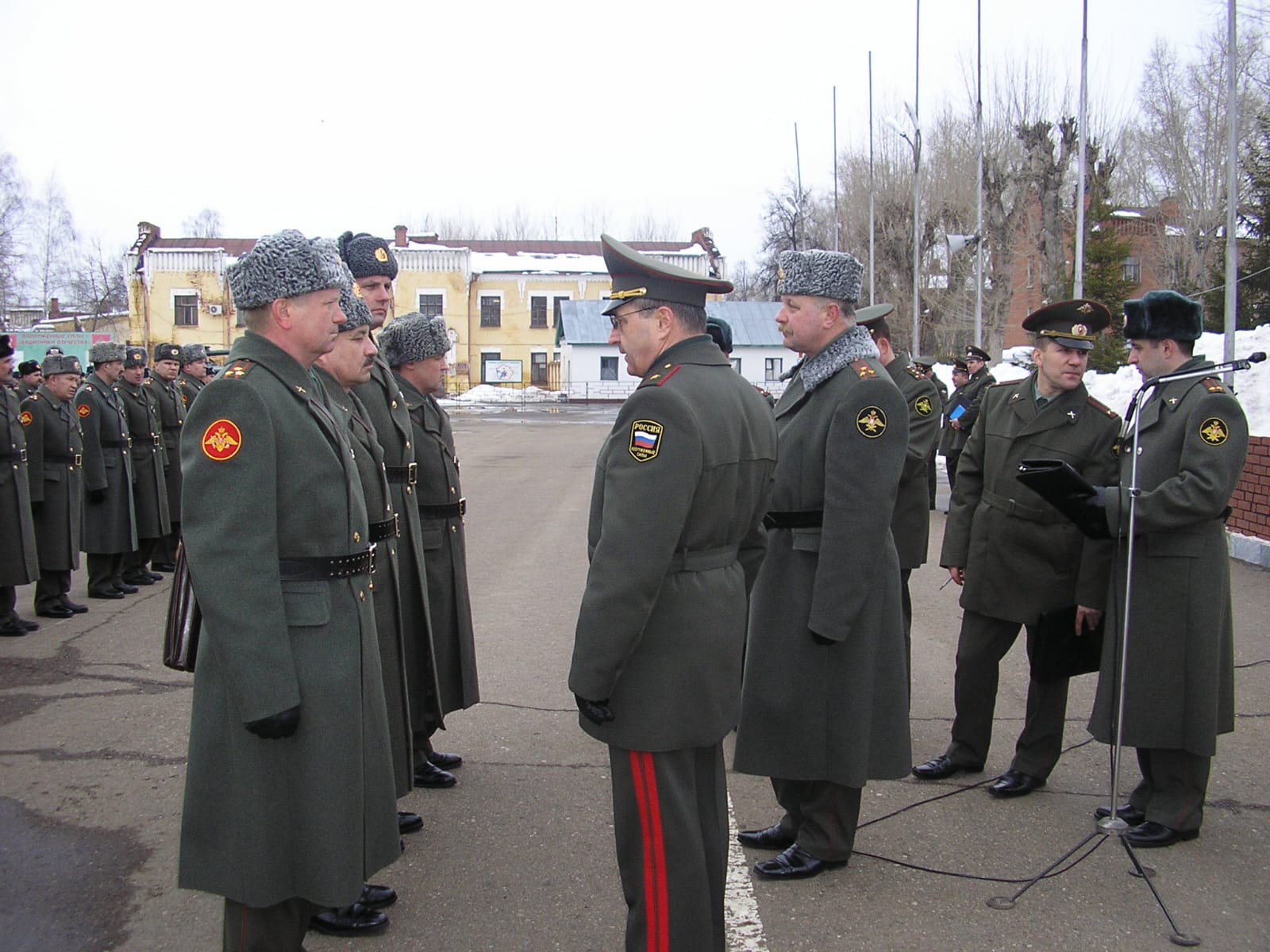 По ношению нарукавных нашивок и эмблем. Весной 2006 носили так нашивка Космических Войск и нашивка Московского военного округа по территориальному месту службы, причем это скажем так официальный вариант на тот момент, хотя большинству не охота была искать эту красную нашивку и тратить на нее деньги. Эмблемы носили и старого образца и нового, в том числе по специальности - связь. Только к весне 2009 на всех надели овальные петлицы Космических Войск и нашивку с орлом, тогда же реально начали появляться нашивки частей и соединений.