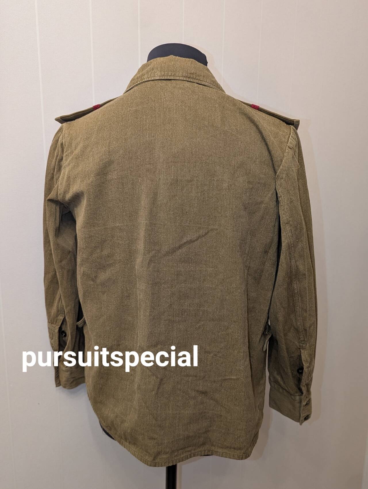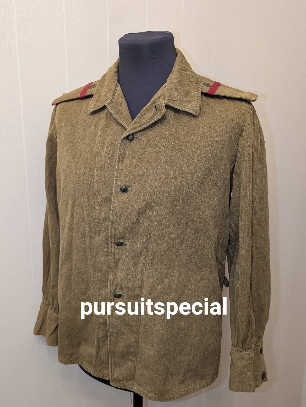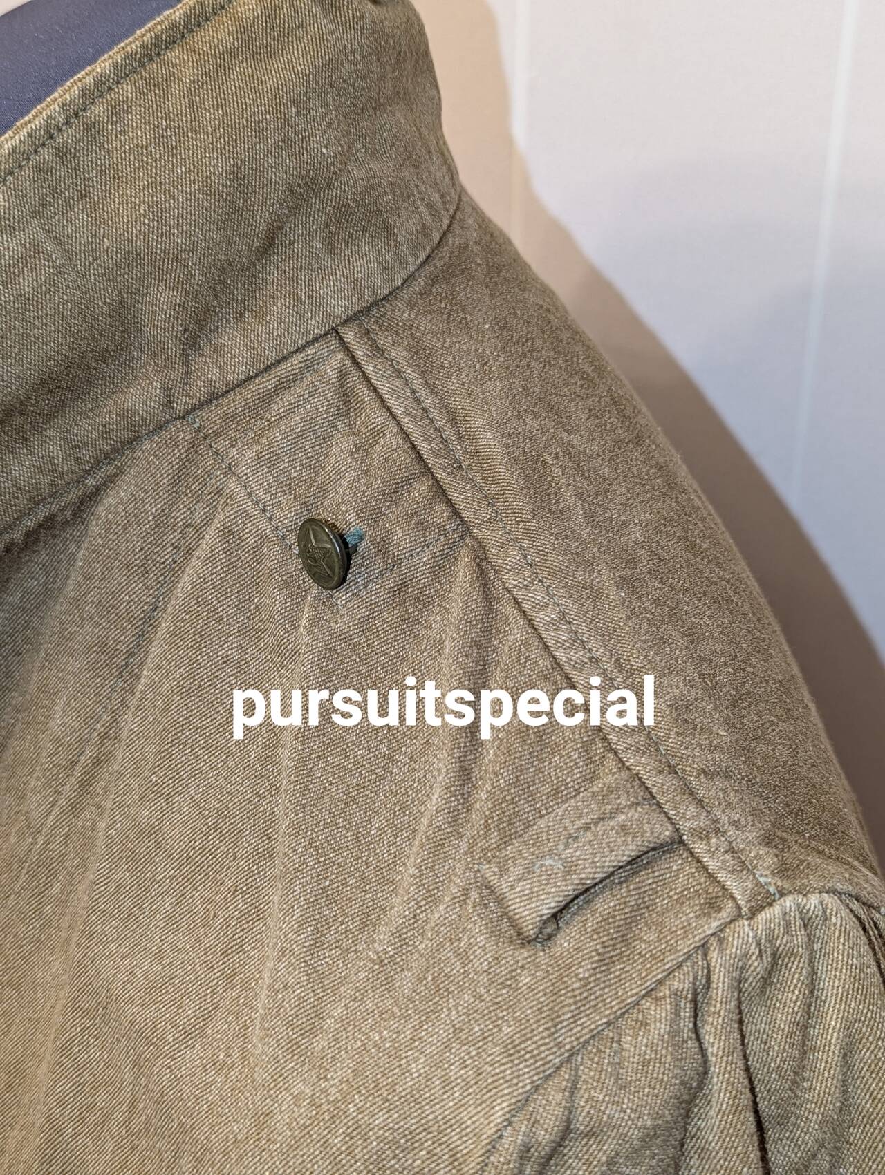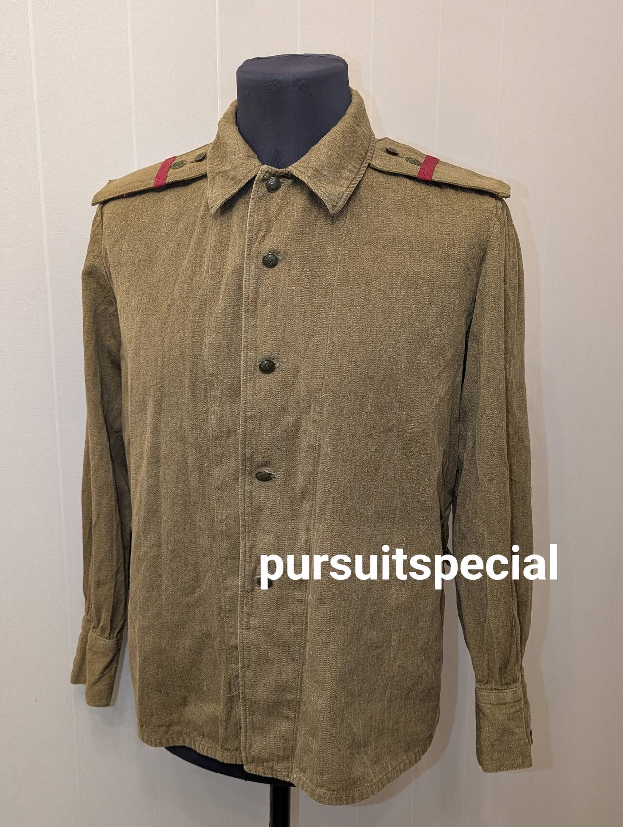 Изделие фабричное, не перешитое, есть даже стандартный штамп с указанием размера, года выпуска (1962) и прочей информации. Все пуговицы — мосштамп 1962 года. Версия рубашки солдатская, под погон уже пришиты пуговицы.