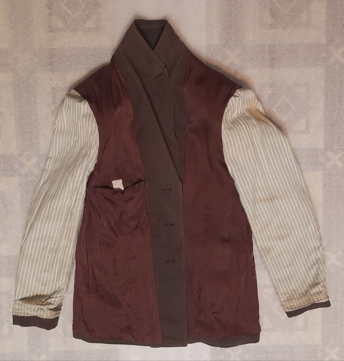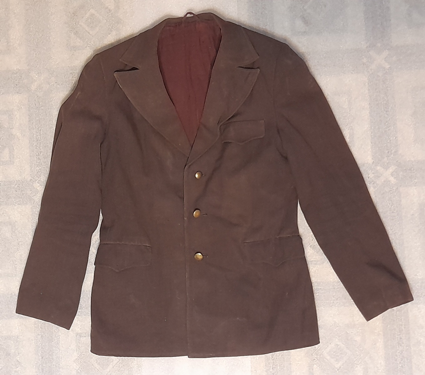 То, что пиджак коричневый, на фото тоже не видно.