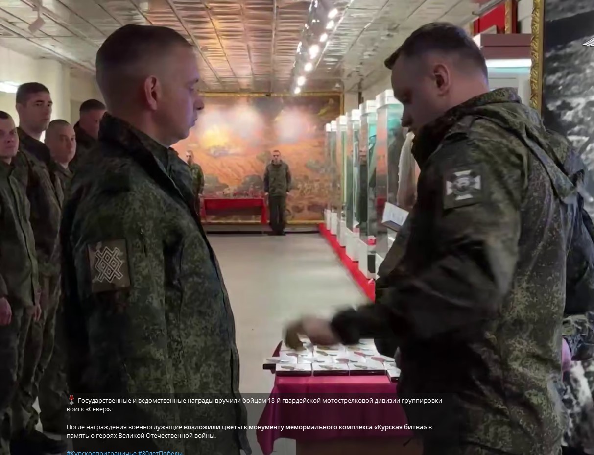 Возьмём для примера церемонию награждения бойцов 18-й мсд. Кто здесь носит на рукаве нашивку по своему воинскому подразделению?