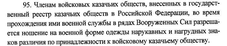 Ну наверное имеется ввиду, что если казак подписал контракт с МО РФ и проходит службу по контакту, то можно носить нашивку того казачьего формирования, где до этого проходил службу.
